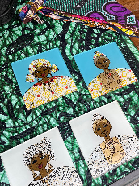 Afrikanische Glasmalerei 'She&Him'-Untersetzer